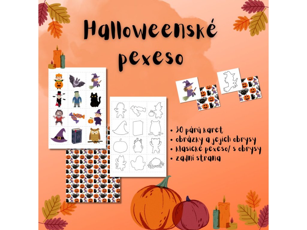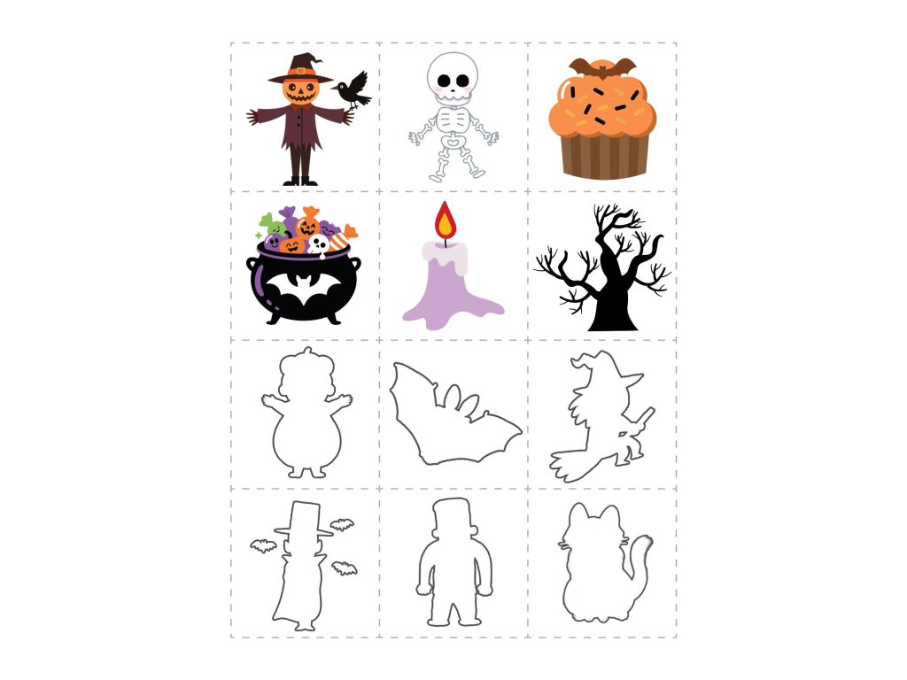 Halloweenské pexeso - dvojci tvoří tématický obrázek a jeho obrys